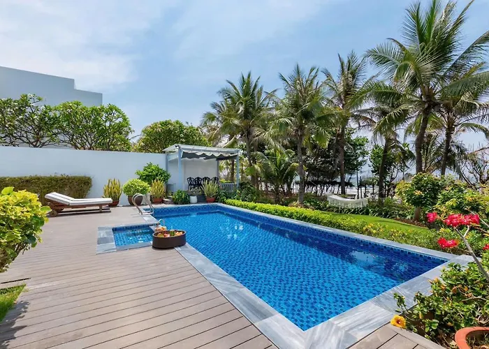5-bedroom Ruby Villa D4 - Sea View -Lying By The Sea is situated within a 7-km distance of Big Mountain Cable Cab and features a swimming pool with a hot tub. Boasting access to a terrace, the beachfront villa invites guests to visit the French colonial Vung Tau Lighthouse, located approximately a 15-minute ride away.